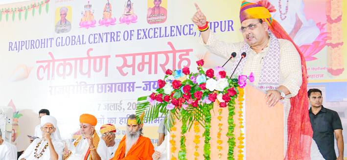 शर्मा ने जयपुर में संतजनों की उपस्थिति में राजपुरोहित ग्लोबल सेंटर ऑफ एक्सीलेंस (राजपुरोहित छात्रावास) का फीता काटकर उद्घाटन किया एवं छात्रावास परिसर का अवलोकन भी किया। इस अवसर पर आयोजित समारोह को संबोधित करते हुए उन्होंने कहा कि राजपुरोहित समाज शिक्षा के क्षेत्र में अग्रणी भूमिका निभा रहा है। इस छात्रावास का निर्माण शिक्षा के क्षेत्र में समर्पण और सामाजिक सरोकार की सच्ची मिसाल है। यह छात्रावास युवाओं को गुणवत्तापूर्ण शिक्षा प्राप्त करने के लिए मजबूत आधार प्रदान करेगा। मुख्यमंत्री ने कहा कि छात्रावास में विभिन्न क्षेत्रों के विद्यार्थी साथ रहते हैं, जिससे बेहतर संवाद स्थापित होता है और उनका आत्मविश्वास बढ़ता है।
