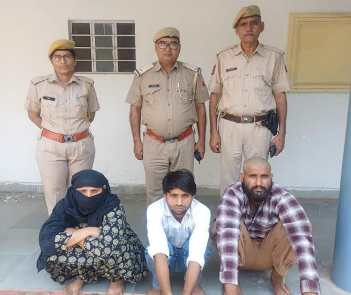 पुलिस ने मामले में आरोपी वसीम खान उर्फ मूसा मेव (18) निवासी विजय मन्दिर, प्रियांशु चौधरी उर्फ गोधू (21) निवासी एनईबी और महिला आरोपी शहरुना (33) को गिरफ्तार किया हैं। महिला ने दो शादियां की हुई है।