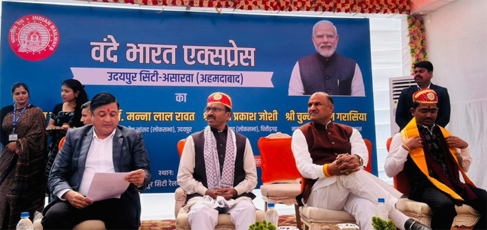 उदयपुर सिटी-असारवा-उदयपुर सिटी वन्दे भारत ट्रेन का हरी झंडी दिखाकर शुभारंभ