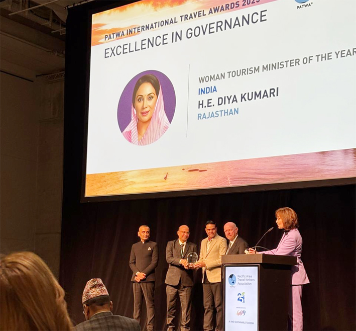 जयपुर। पेसिफिक एशिया ट्रैवल राइटर्स एसोसिएशन’ ने राजस्थान में पर्यटन को बढ़ावा देने के लिए किए गए सराहनीय कार्यों के लिए उप मुख्यमंत्री और पर्यटन मंत्री दीया कुमारी को वीमन टूरिज्म मिनिस्टर ऑफ द ईयर, इंडिया के सम्मान से सम्मानित किया है। उन्हें यह सम्मान आईटीबी बर्लिन, जर्मनी में सेशेल्स के पूर्व पर्यटन मंत्री, डॉ. एलन सेंटएन्ज द्वारा दिया गया।