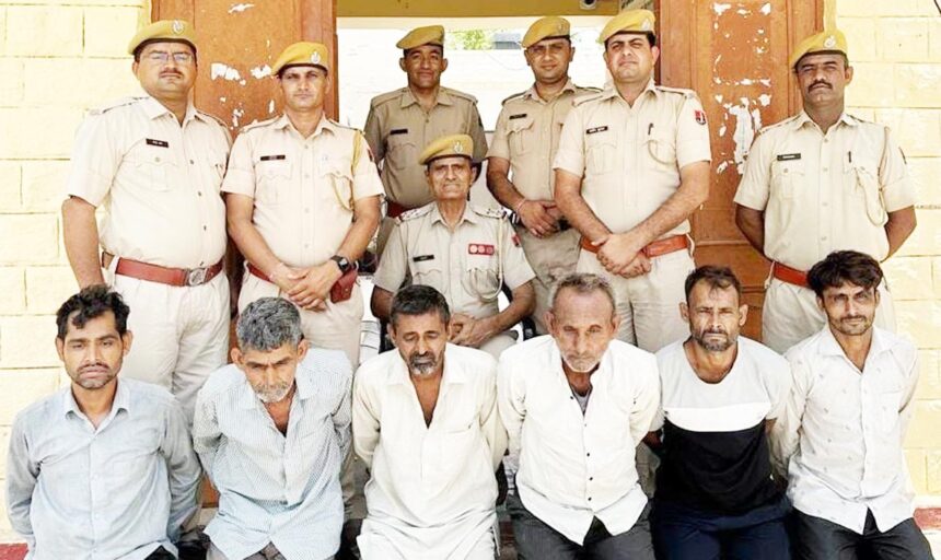 पुलिस टीमों ने गिरोह के मुख्य सरगना राजा उर्फ राजेश सांसी पुत्र महबीर उर्फ बलबीर (35) निवासी थाना अगरोहा जिला हिसार, जयबीर सांसी पुत्र गणपत (54) निवासी थाना मेहम जिला रोहतक सहित नरेश सांसी पुत्र करतार (30) निवासी थाना हांसी जिला हिसार, रामनिवास सांसी पुत्र इंद्र सिंह (38) निवासी थाना बास जिला हिसार, शीशराम सांसी पुत्र भग्गू राम (53) निवासी थाना अगरोहा जिला हिसार एवं चंद्रभान सांसी पुत्र रंजीत (55) निवासी थाना मेहम जिला रोहतक हरियाणा को गिरफ्तार किया है।