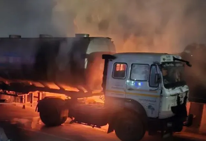 जयपुर-अजमेर हाईवे पर हाईवे पर केमिकल से भरे टैंकर में लगी आग, मची अफरा तफरी