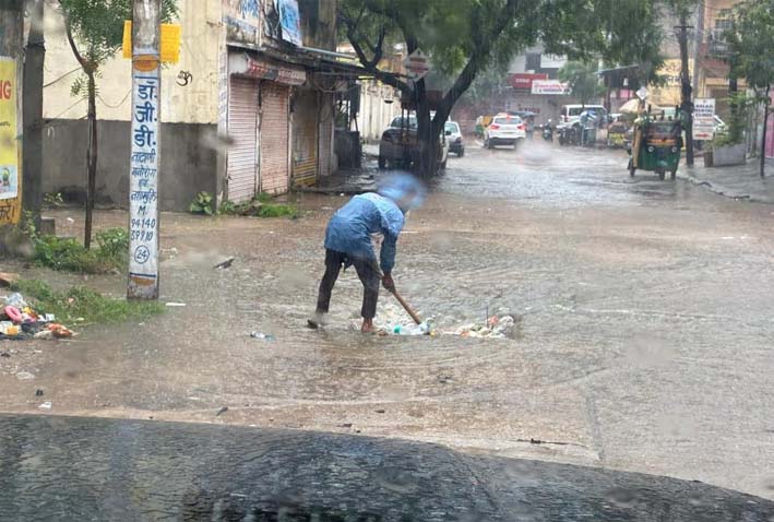 जयपुर। मुख्यमंत्री महोदय के निर्देशन एवं नेतृत्व में भारी बारिश के बीच जयपुर विकास प्राधिकरण सुबह से ही अलर्ट मोड पर रहा। जेडीए की टीमें फील्ड में लगातार काम कर रही हैं जिससे शहर में जलभराव की समस्या से निपटा जा सके। प्रत्येक जोन स्तर पर अभियंताओं की टीमें पंपों से पानी निकालने और नालों पर जमे कचरे को हटाने में जुटी रही हैं। मुख्यमंत्री के निर्देश पर जेडीसी और निदेशक अभियांत्रिकी खुद स्थिति पर नजर बनाए रखे हुए थे। जेडीए आमजन की सेवा में तत्पर है।