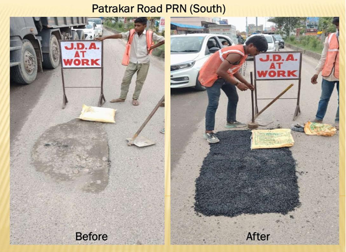 जेडीए द्वारा गत दिनों अजमेर रोड, नील पदम सरोवर मार्ग, गांधी पथ ईस्ट एवं वेस्ट, चित्रकूट सेक्टर-4, टॉयलर स्कूल के सामने, निवारू रोड, हाथोज लिंक रोड, कालवाड़ रोड, ग्राम नींदड़, 200 फीट सेज रोड, दादी का फाटक, नाड़ी का फाटक, सेक्टर-6 विद्याधर नगर, पत्रकार कॉलोनी इत्यादि स्थानों पर लगातार हो रही वर्षा के दौरान पेच रिपेयर कार्य किये जा रहे हैं।