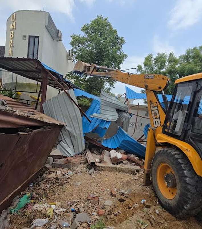 जयपुर। जयपुर विकास प्राधिकरण द्वारा जोन-9 में गैर अनुमोदित योजना चाणक्यपुरी में व्यावसायिक प्रयोजनार्थ बनी 04 टीन शैडनुमा अवैध दुकानों को पूर्णतः ध्वस्त किया गया। जोन-14 में निजी खातेदारी करीब 03 बीघा कृषि भूमि पर 02 नवीन अवैध कॉलोनियों का पूर्णतः ध्वस्त किया गया। वाटिका रोड श्री राम की नागल में करीब 01 बीघा मंदिर माफी की भूमि को अतिक्रमण मुक्त करवाया गया। महानिरीक्षक पुलिस कैलाश चन्द्र विश्नोई ने बताया को जोन-9 के क्षेत्राधिकार में अवस्थित जागतपुरा में गैर अनुमादित योजना चाणक्यपुरी में व्यावसायिक प्रयोजनार्थ 04 टीनशेड नुमा अवैध दुकानों का निमार्ण किये जाने की सूचना प्राप्त होने पर आज जोन-9 के राजस्व व तकनीकी स्टॉफ की निशादेही पर प्रवर्तन दस्ते द्वारा जेसीबी मशीन व मजदूरों की सहायता से ध्वस्त किया गया। जोन-14 के क्षेत्राधिकार में अवस्थित जयचंदपुरा में संजीवनी-ााा योजना के पास चंदलाई रोड जिला जयपुर में करीब 02 बीघा कृषि भूमि पर जेडीए की बिना स्वीकृति-अनुमोदन के एवं बिना भू रूपान्तरण करवायें भूमि को समतल कर बनाई गई मिट्टी-ग्रेवल सड़के, बाउन्ड्रीवाल व अन्य अवैध निर्माण कर नवीन अवैध कॉलोनी बसाने की सूचना प्राप्त होने पर आज जोन-14 के राजस्व व तकनीकी स्टॉफ की निशादेही पर प्रवर्तन दस्ते द्वारा जेसीबी मशीन व मजदूरों की सहायतासे ध्वस्त किया जाकर नवीन अवैध कॉलोनी बसाने के प्रयास को विफल किया गया।