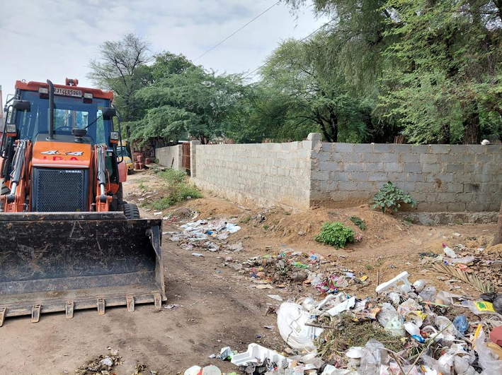 जोन-10 के क्षेत्राधिकार ईकोलोजिकल जोन में अवस्थित रामगढ़ रोड़, पशु हटवाड़ा के पास, कुण्दाला की ढ़ाणी, जिला जयपुर के खसरा नं. 2958 में करीब 03 बीघा निजी खातेदारी कृषि भूमि पर बिना स्वीकृति-अनुमोदन के एवं बिना भू रूपान्तरण करवायें भूमि को समतल कर बनाई गई मिट्टी-ग्रेवल सड़के, प्लॉटांें की बाउण्ड्रीवाल व अन्य अवैध निर्माण कर नवीन अवैध कॉलोनी बसाने की सूचना प्राप्त होने पर श्रीमान् उप महानिरीक्षक राहुल कोटोकी के निर्देशन में आज जोन-10 के राजस्व व तकनीकी स्टॉफ की निशादेही पर प्रवर्तन दस्ते द्वारा जेसीबी मशीन व मजदूरों की सहायता से प्रारिम्भक स्तर पर ही ध्वस्त किया जाकर नवीन अवैध कॉलोनी बसाने के प्रयास को विफल किया गया।