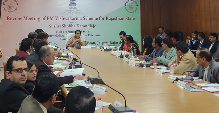 जयपुर। केंद्रीय सूक्ष्म, लघु एवं मध्यम, उद्यम तथा श्रम एवं रोजगार राज्य मंत्री सुश्री शोभा करंदलाजे ने कहा है कि देश को 2047 तक विकसित राष्ट्र बनाने में एमएसएमई की महत्वपूर्ण भूमिका होगी। उन्होंने कहा कि कृषि के बाद एमएसएमई ही सबसे ज्यादा रोजगार उपलब्ध कराने का माध्यम है। श्रीमती करंदलाजे ने आज जयपुर के उद्योग भवन में प्रधानमंत्री विश्वकर्मा योजना की राजस्थान में प्रगति की समीक्षा की। उन्होंने केंद्र सरकार की अन्य योजनाओं के बारे में भी विस्तार से जानकारी ली और उनकी प्रगति के संबंध में दिशा-निर्देश दिए।