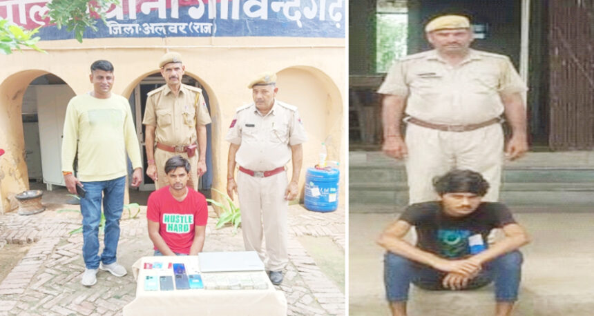जयपुर। अलवर जिले में ऑनलाइन ठगी करने वालों के विरुद्ध चलाए जा रहे ऑपरेशन एंटीवायरस के अंतर्गत गोविंदगढ़ एवं कठूमर थाना पुलिस की टीम ने अलग-अलग कार्रवाई करते हुए दो साइबर ठगों को गिरफ्तार किया है। इनके पास से पुलिस ने कुल 7 मोबाइल, 2.22 लाख रुपए, दो एटीएम कार्ड एवं एक लैपटॉप जब्त किया है।