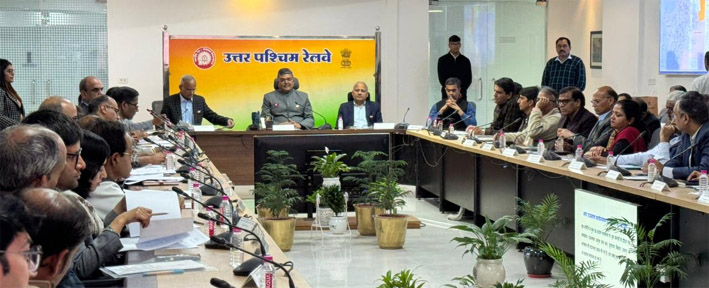 जयपुर। नगर राजभाषा कार्यान्वयन समिति (कार्यालय-2) जयपुर की छमाही बैठक का आयोजन अमिताभ, महाप्रबंधक, उत्तर पश्चिम रेलवे एवं अध्यक्ष नराकास की अध्यक्षता में प्रधान कार्यालय, उत्तर पश्चिम रेलवे, जयपुर के संकल्प सभाकक्ष में किया गया। उत्तर पश्चिम रेलवे के मुख्य जनसम्पर्क अधिकारी अमित सुदर्शन के अनुसार बैठक का शुभारंभ समिति सदस्यों के औपचारिक स्वागत एवं परिचय में हुआ। सर्वप्रथम वरिष्ठ उप महाप्रबन्धक एवं मुख्य राजभाषा अधिकारी थी शिवेन्द्र मोहन द्वारा अध्यक्ष महोदय का पौधा भेंट कर स्वागत किया गया।