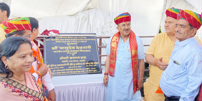 विधानसभा अध्यक्ष वासुदेव देवनानी ने रविवार को सीआर बिल्डिंग चौरसियावास रोड से वैशाली नगर तक सवा किलोमीटर लम्बे नाला निर्माण कार्य का शुभारंभ किया। यह नाला 4 करोड़ 73 लाख रुपए की लागत से बनाया जाएगा। यह नाला अभियंता नगर, गांधीनगर, अरावली नगर, गौरी नगर, चौधरी कॉलोनी से होकर प्रेस क्लब के सामने से होते हुए गुजरेगा।