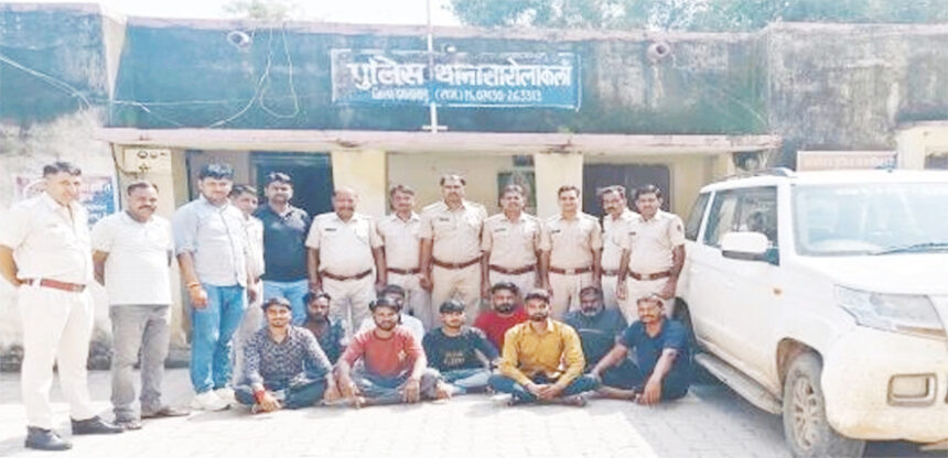 एसपी ऋचा तोमर ने बताया कि मुल्जिम धनराज उर्फ धनजी गुर्जर पुत्र लक्ष्मीनारायण (38) व नवल मेघवाल पुत्र कजोडीमल निवासी तारज थाना सारोला, रवि गौतम पुत्र विष्णुप्रसाद (31) निवासी सारोला कलां, अशोक गुर्जर पुत्र रमेशचन्द (27), राधेश्याम गुर्जर पुत्र मौजीराम (20) व दिनेश गुर्जर पुत्र मौजी राम (24) निवासी निवासी बान्दरी थाना अकलेरा हाल तारज, सोनू गुर्जर पुत्र रामचरण (23) निवासी मालनवासा थाना सारोला, फूलचन्द गुर्जर पुत्र छोटू लाल (27) निवासी बान्दरी थाना अकलेरा एवं अनुराग उर्फ लखन पुत्र महावीर सिंह राजपूत (30) निवासी सेवनिया हाल तारज को गिरफ्तार किया गया है, शेष फरार मुल्जिमों की तलाश जारी है।