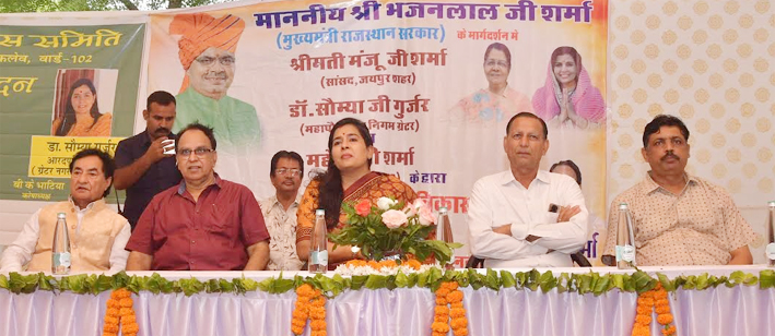 बुधवार को सांगानेर जोन के वार्ड संख्या 102 में जागृति पार्क जोन 68 में सांसद जयपुर (शहर) श्रीमती मंजू शर्मा, महापौर डॉ. सौम्या गुर्जर द्वारा विभिन्न विकास कार्यो का शिलान्यास किया गया। इसके साथ ही उपस्थित आमजन को योगाभ्यास भी करवाया। इस अवसर स्थानीय पार्षद महेन्द्र शर्मा सहित अन्य जनप्रतिनिधिगण मौजूद रहे।