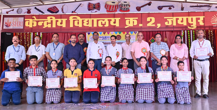 विभिन्न प्रतियोगिताओं में उत्कृष्ट प्रदर्शन करने वाले विद्यार्थियों को पुरस्कार प्रदान किए गए। केवीएस क्षेत्रीय राष्ट्रीय एकता पर्व 2025 का आयोजन पीएम श्री केंद्रीय विद्यालय क्रमांक 2, जयपुर में दिनांक 29.08.2025 एवं 30.08.2025 को किया गया। केंद्रीय विद्यालय संगठन जयपुर संभाग के सभी 09 संकुलों ने विभिन्न गतिविधियों में भाग लिया और जयपुर संकुल ने प्रथम स्थान, जोधपुर संकुल ने द्वितीय स्थान तथा अजमेर संकुल ने तृतीय स्थान प्राप्त किया। चयनित विजेता अब राष्ट्रीय स्तर की प्रतियोगिता, जो 30 अक्टूबर से 1 नवम्बर तक चेन्नई में आयोजित होगी, में अपने विद्यालय व संभाग का प्रतिनिधित्व करेंगे। समारोह में उपस्थित अतिथियों एवं अभिभावकों ने विद्यार्थियों की प्रतिभा की सराहना करते हुए विद्यालय परिवार को हार्दिक बधाई दी।