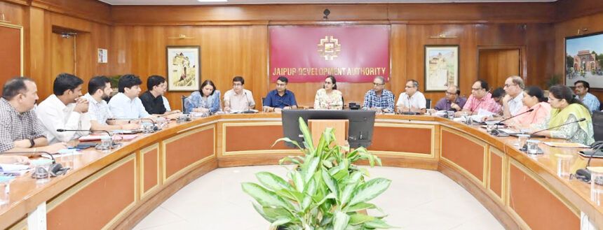 जयपुर। स्वायत्त शासन, नगरीय विकास एवं आवासन मंत्री झाबर सिंह खर्रा महोदय के मार्गदर्शन में जयपुर विकास आयुक्त आनन्दी की अध्यक्षता में रविवार को जेडीए के मंथन सभागार में जविप्रा के समस्त प्रकोष्ठों की समीक्षा बैठक संपन्न हुई। जिसमें समस्त प्रकोष्ठों द्वारा पीपीटी के माध्यम से अपने-अपने प्रकोष्ठों का प्रेजेंटेशन दिया गया। बैठक में जेडीए सचिव डॉ. निशांत जैन, समस्त निदेशकगण, समस्त अतिरिक्त आयुक्तगण, मुख्य प्रवर्तन नियंत्रक, समस्त उपायुक्त उपस्थित थे। अन्य संबंधित अधिकारी ऑनलाईन बैठक में जुुडे।