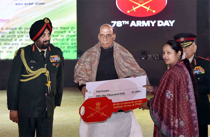 सिंह ने कहा कि सैनिक जानते हैं वह जिस जनता की रक्षा कर रहे हैं, वह उनके परिवार का हिस्सा हैं। इसी प्रकार, जनता भी जानती है कि उनके सैनिक कभी उन्हें निराश नहीं कर सकते। यह पारस्परिक विश्वास का बंधन ही हमारे राष्ट्रीय सुरक्षा ढांचे की नींव है। उन्होंने कहा कि हमारे सैनिकों ने किसी भी देश में आवश्यकता पर नागरिकों की चिकित्सकीय मदद, बुनियादी ढांचे का विकास और मानवीय मदद भी प्रदान की है। हमारी सेना दुनिया के लिए शांतिदूत बनकर उभरी है। इससे भारत की ‘वसुधैवः कुटुम्बकम्’ की भावना को बल मिला है।
