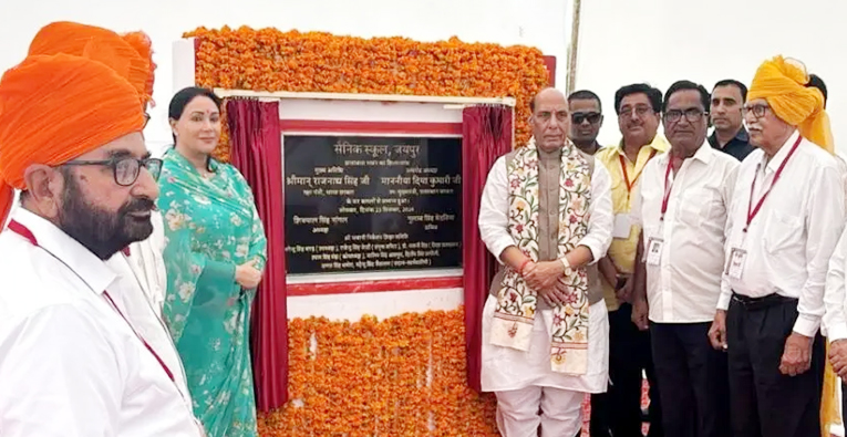 जयपुर में सीकर रोड स्थित श्री भवानी निकेतन शिक्षा समिति के अंतर्गत संचालित सैनिक स्कूल के उद्घाटन समारोह को संबोधित करते हुए रक्षा मंत्री राजनाथ सिंह ने कहा कि मेरा सौभाग्य कि आज सैनिक स्कूल के उद्घाटन में मौजूद हूं। मुझे खुशी है कि मैं एक शिक्षक रह चुका हूं। राजस्थान की धरती वीरता ही नहीं संस्कृति के लिए भी पहचानी जाती है। यहां महाराणा प्रताप, पृथ्वीराज चौहान, सूरजमल और सवाई जयसिंह जैसे वीरों ने जन्म लिया है। राजस्थान की धरती पर सैनिक स्कूल खुलना किसी वरदान से कम नहीं है।