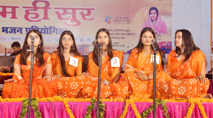 महापौर डॉ. सौम्या गुर्जर ने बताया कि ‘‘राम ही सुर’’ भजन प्रतियोगिता में 11 स्कूल, कॉलेज की 21 टीमों के 200 से अधिक छात्र-छात्राओं द्वारा भाग लिया गया। युवाओं में राम भजनों के प्रति उत्साह नजर आया। महारानी कॉलेज, कनोडिया कॉलेज, बियानी कॉलेज, यूनिवर्सिटी का म्यूजिकल डिपार्टमेंट, संगीत संस्थान, राजस्थान कॉलेज, पारीक कॉलेज की टीमों द्वारा ‘‘हम कथा सुनाते है’’ ‘‘ये चमक ये दमक’’ ‘‘जैसे सूरज की गर्मी’’ ‘‘रघु नन्दन जयश्री राम’’ ‘‘हम कथा सुनाते है’’ जैसे भजन प्रस्तुत किये गये । जिससे वहां बैठे श्रोताओं ने भजनों के संगीत मय प्रस्तुति से भाव विभोर होकर भजनों का आंनन्द लिया। उन्होंने बताया कि निर्णायक मण्डल द्वारा ‘‘राम ही सुर’’ भजन प्रतियोगिता में प्रथम, द्वितीय एवं तृतीय स्थान पर रहे प्रतिभागीयों को सम्मानित किया गया।