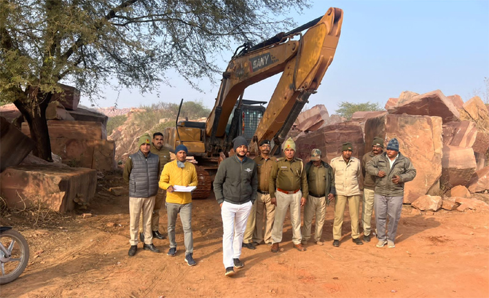 अधीक्षण खनि अभियंता सुनील कुमार शर्मा के मार्गदर्शन में बड़ी कार्रवाई में बंशीपहाड़पुर क्षेत्र में अवैध खनन पर मशीन जब्ती और खननकर्ताओं के खिलाफ एफआईआर दर्ज कराने की कार्रवाई की है। इसमें एक पोकलेन मशीन, एक ट्रोला एवं एक ट्रेक्टर पम्प जब्त किये जाकर पुलिस थाना रूदावल की सूपूदर्गी में दिये गये ।