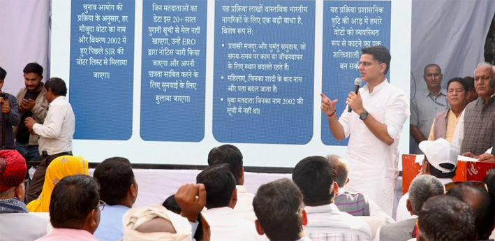 उन्होंने कहा कि केन्द्र्र सरकार ने मुख्य चुनाव आयुक्त की नियुक्ति की प्रक्रिया में संशोधन करके इसको लचर करने का काम किया। भाजपा की सरकार ने बिहार में चलते चुनाव के बीच प्रत्येक महिला के खाते में 10-10 हजार रूपये डालने का काम किया और चुनाव आयोग मूकदर्शक बनके बैठा रहा। इससे साफ जाहिर है कि चुनाव आयोग की निष्पक्षता धीरे-धीरे खत्म होती जा रही है। उन्होंने कहा कि हमें अपने अधिकारों के प्रति जागरूक होना होगा, देश बदलने से पहले स्वयं को बदलना होगा। पायलट ने कहा कि हमें सक्रिय रहकर सतर्कता के साथ मतदाता सूचियों के पुनरीक्षण कार्य में अपनी प्रभावी भूमिका का निर्वहन करना होगा।