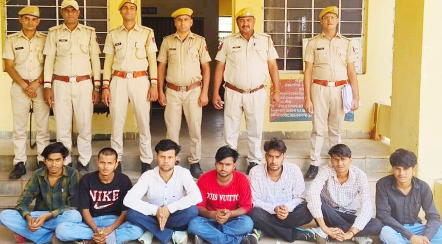 एसपी बृजेश ज्योति उपाध्याय ने बताया कि गिरफ्तार सभी आरोपी धारा सिंह मीना पुत्र रघुवीर (26), टीकाराम मीना पुत्र भरत लाल (23), लव कुश मीना पुत्र कमलेश (20), भूर सिंह मीना पुत्र कमलेश (21), सोनू मीना पुत्र मंटू (20), सौरभ मीना पुत्र जगदीश एवं दीपक मीना पुत्र हेमराज (19) थाना क्षेत्र के रानीपुरा गांव के रहने वाले हैं।