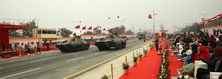 फुल ड्रेस रिहर्सल में आत्मनिर्भर भारत की अवधारणा को साकार करते हुए स्वदेशी तकनीक से विकसित मिसाइलों, टैंकों और हथियार प्रणालियों का प्रदर्शन किया गया। रविवार को रिहर्सल के दौरान अपाचे और प्रचंड हेलिकॉप्टर, डायमंड शेप सहित विभिन्न लड़ाकू ड्रोन विमानों की उड़ानों ने दर्शकों को रोमांचित कर दिया। जल, थल और वायु—तीनों आयामों में सेना की सामरिक शक्ति का प्रभावी प्रदर्शन हुआ।