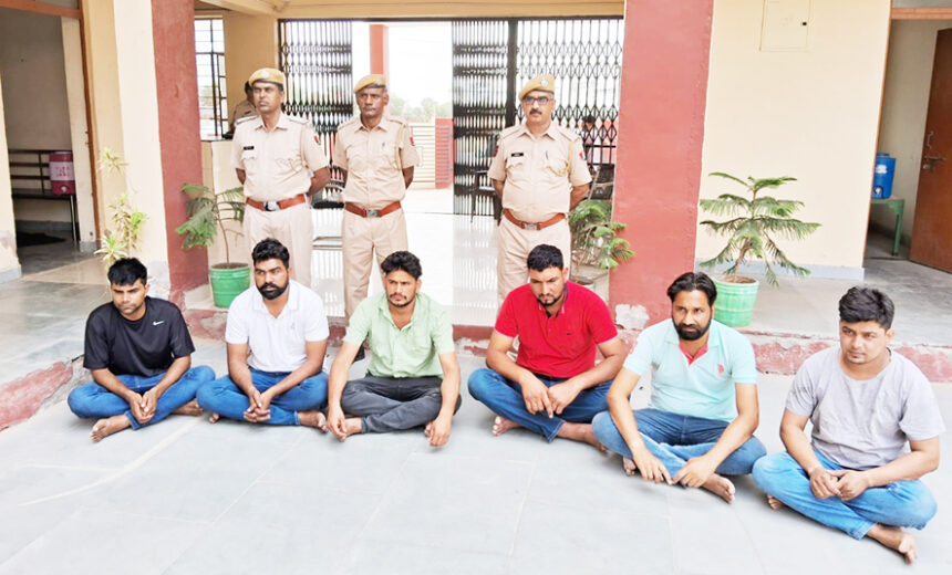 जयपुर/चूरू। चूरू जिले में बीदासर कस्बे में सोने की तस्करी में लिप्त एक युवक के अपहरण के इरादे से घूम रहे छह बदमाशों को थाना पुलिस की टीम ने गिरफ्तार कर लिया है। पुलिस ने उनके कब्जे से एक फॉर्च्यूनर कार भी जब्त की है। गिरफ्तार आरोपी अपराधिक पृष्ठभूमि के हैं, जिनसे पुलिस की टीम पूछताछ कर रही है।एसपी जय यादव ने बताया कि आरोपी विकास जाट पुत्र गोविन्दराम (28) निवासी जुवाहरपुरा थाना रतन नगर जिला चूरु, धमेन्द्र सिंह पुत्र अमर सिंह (28) निवासी खटिकान प्याउ थाना लक्ष्मणगढ़ जिला सीकर, विकास गुर्जर पुत्र मूलचंद (24) निवासी बसावा थाना गोठड़ा जिला झूंझूंनूं, विकास जाट पुत्र महेश कुमार (28) निवासी ढ़ाणी खिरोड़ थाना गोठड़ा़ जिला झूंझूंनूं, मख्खन लाल गुर्जर पुत्र घीसा राम (30) निवासी झाझड़ थाना नवलगढ़ जिला झूंझूंनूं एवं अंकित पुत्र ओमप्रकाश (30) निवासी धोद थाना धोद जिला सीकर को गिरफ्तार किया गया है।एसपी यादव ने बताया कि शनिवार को गश्त के दौरान एसएचओ कैलाश चन्द यादव को सूचना मिली कि दो फॉर्च्यूनर, दो कैंपर व एक ब्लैक स्कॉर्पियो गाड़ी में बाहर के दिखने वाले 15-20 युवक बैठे हैं। उनकी गाड़ियां डूंगरपुर तिराहे से बस स्टैंड की तरफ दो-तीन राउंड काट चुकी है। मामले की गंभीरता को भांपते हुए अतिरिक्त जाब्ता मंगवा एसएचओ यादव मय टीम के तुरंत मौके पर पहुंचे।मौके पर एक फॉर्च्यूनर जिसके नंबर RSA0056 थे दिखाई दी। जिसका पीछा करने पर कार चालक ने पुलिस जीप के टक्कर मारी, जिससे फॉर्च्यूनर झटके से बंद हो गई। गाड़ी बंद होते ही उसमें बैठे युवक भागने लगे। पीछा कर कुल 6 जनों को टीम ने पकड़ लिया। अन्य गाड़ियों की तलाश के लिए थाना छापर, सांडवा व सुजानगढ़ इलाके में नाकाबंदी करवा तलाश करवाई गई।पकड़े गए सभी छह आरोपियों को थाने लाकर गिरफ्तार किया गया। पूछताछ में सामने आया कि सभी युवक आपराधिक पृष्ठभूमि के हैं। बीदासर का एक युवक जो सोने की तस्करी में लिप्त है, उसके द्वारा तस्करी के सोने में से गबन किए जाने के संदेह के कारण अपहरण करने के उद्देश्य से ये बदमाश यहां आए थे।एसपी यादव ने बताया कि वांछित अपराधियों की धर पकड़ के लिए चलाए जा रहे विशेष अभियान ऑपरेशन शिकंजा के तहत संगठित अपराध व गैंगवार की घटनाओं पर प्रभावी अंकुश लगाने के प्रयास किये जा रहे हैं। इस प्रकार की घटनाओं के होने से पूर्व उन पर अंकुश लगाने निरंतर प्रोएक्टिव पुलिसिंग के तहत चुरु पुलिस द्वारा कार्रवाई की जा रही है।