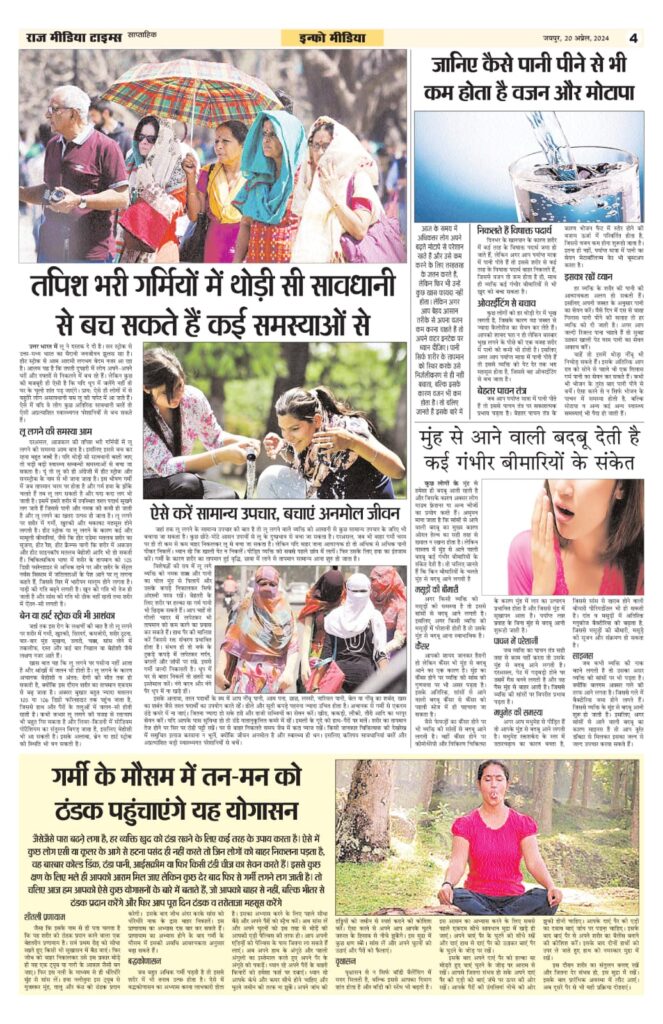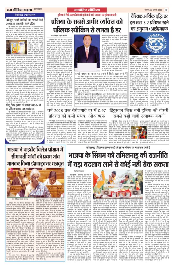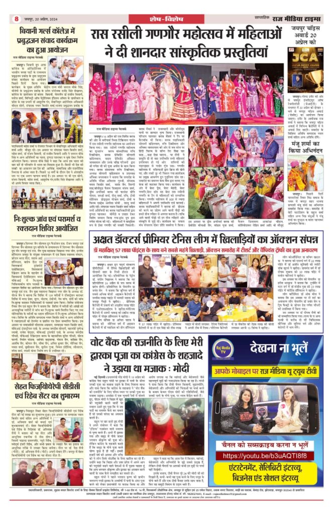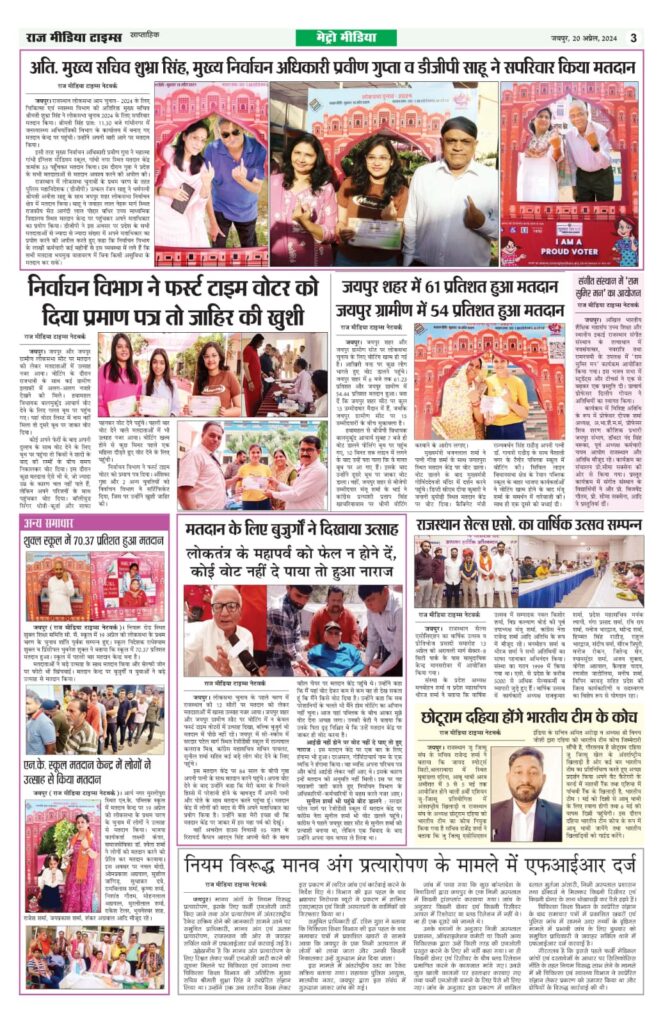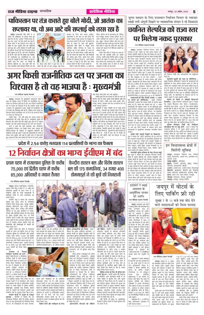 E-Paper 19 april 2024 E-paper Last updated: April 20, 2024 4:00 am RMT network Share 0 Min Read SHARE Sign Up For Daily NewsletterBe keep up! Get the latest breaking news delivered straight to your inbox.[mc4wp_form]By signing up, you agree to our Terms of Use and acknowledge the data practices in our Privacy Policy. You may unsubscribe at any time. Share This Article Facebook Twitter Copy Link Print Share Previous Article 21 राज्यों की 102 सीटों पर वोटिंग खत्म, शांतिपूर्ण रहा मतदान Next Article लोकसभा आम चुनाव-2024, प्रदेश के 12 लोकसभा निर्वाचन क्षेत्रों में हुआ शांतिपूर्ण Stay Connected235.3kFollowersLike69.1kFollowersFollow11.6kFollowersPin56.4kFollowersFollow136kSubscribersSubscribe4.4kFollowersFollow - Advertisement - Latest News फ़ाइनल में पहुंचा भारत, बेथेल का शतक गया बेकार Sports March 6, 2026 भारत के पावरफुल नारी ग्रुप और काली सुपारी द्वारा आयोजित “Influencer & Business Super Excellence Award”, 101 प्रतिभाओं को किया गया सम्मानित Jaipur March 6, 2026 79 अभ्यर्थियों के चयन के बाद 5 के स्थान पर रिव्यू सूची जारी, दस्तावेज सत्यापन हेतु 9 मार्च को बुलाया Jaipur March 6, 2026 विद्यालयों में बुनियादी सुविधाएं हों सुनिश्चित, सरकारी योजनाओं का हो प्रभावी क्रियान्वयन Jaipur March 6, 2026 AdvertiseAdvertise with us Newsletters Deal