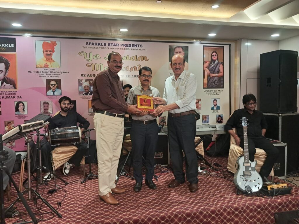 जयपुर। 2 अगस्त 2025 को जयपुर शहर के होटल ग्रैंड सफारी में स्पार्कल स्टार ग्रुप की ओर से बोलीवुड सिंगर ओर एक्टर स्व किशोर कुमार की याद में उनके जन्मदिन समारोह पर म्यूजिकल इवनिंग “ये शाम मस्तानी” का अयोजन किया गया।