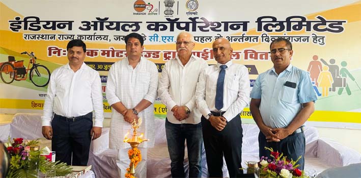 जयपुर। भारत सरकार के उपक्रम भारतीय कृत्रिम अंग निर्माण निगम ने आज इंडियन ऑयल कॉर्पोरेशन लिमिटेड, राजस्थान इकाई के सहयोग से सीएसआर पहल के अंतर्गत लगभग 90 लाभार्थियों को 60 लाख की लागत से निःशुल्क मोटराइज्ड ट्राई साइकिल का वितरण किया गया।