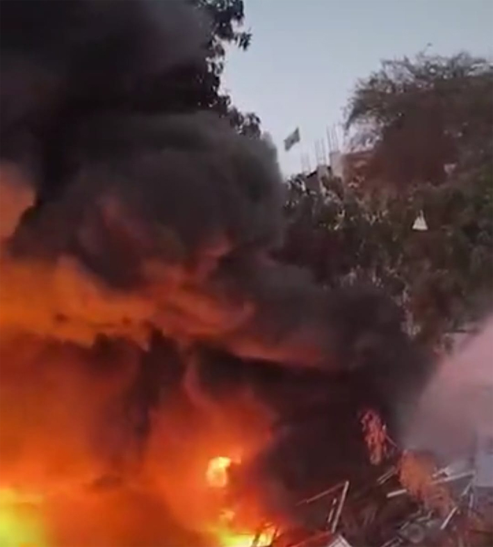 इस दौरान दूर तक आसमान में धुएं का गुबार दिखाई देने लगा।