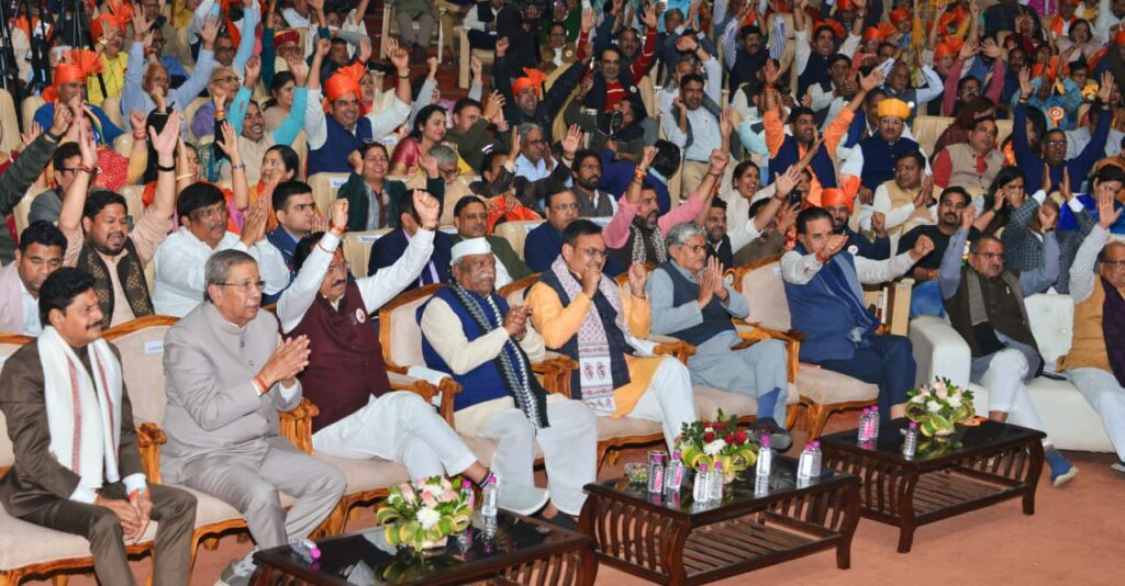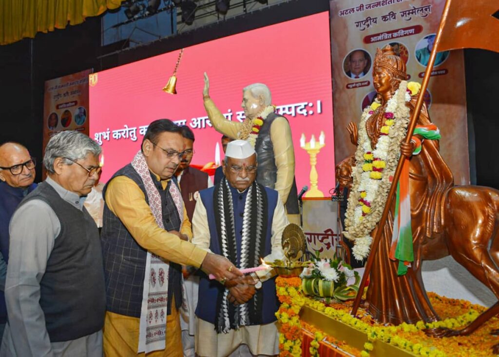 जयपुर। राज्यपाल हरिभाऊ बागडे और मुख्यमंत्री भजनलाल शर्मा ने मंगलवार को भारत रत्न पूर्व प्रधानमंत्री स्व. अटल बिहारी वाजपेयी के जन्म शताब्दी वर्ष के उपलक्ष्य पर बिरला ऑडिटोरियम में राष्ट्रीय कवि सम्मेलन का दीप प्रज्वलित कर शुभारंभ किया। उन्होंने स्व. वाजपेयी के चित्र पर पुष्पांजलि अर्पित की।