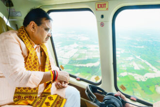 मुख्यमंत्री श्री भजनलाल शर्मा ने अतिवृष्टि और जलभराव प्रभावित क्षेत्रों का हवाई सर्वेक्षण किया