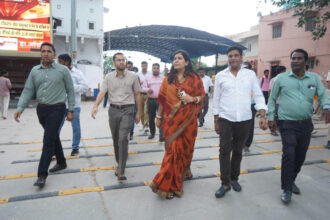 गणेश चतुर्थी पर्व एवं शोभा यात्रा को लेकर नगर निगम ग्रेटर महापौर डॉ॰ सौम्या गुर्जर एवं आयुक्त ने मोती डूँगरी मन्दिर से धर्मसिंह सर्किल तक किया पैदल दौरा