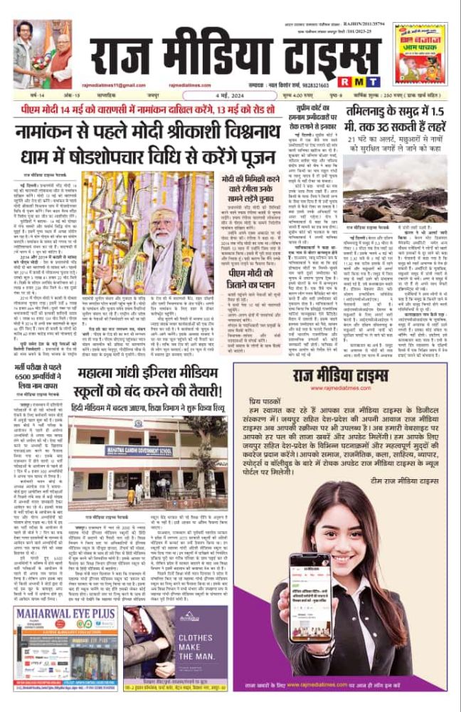 E-PaperUncategorized E-PAPER 3 MAY2024 Last updated: May 4, 2024 3:37 pm RMT network Share 0 Min Read SHARE Sign Up For Daily NewsletterBe keep up! Get the latest breaking news delivered straight to your inbox.[mc4wp_form]By signing up, you agree to our Terms of Use and acknowledge the data practices in our Privacy Policy. You may unsubscribe at any time. Share This Article Facebook Twitter Copy Link Print Share Previous Article рдкреБрд░реА рдореЗрдВ рдХрд╛рдВрдЧреНрд░реЗрд╕ рдХреЛ рдЭрдЯрдХрд╛, рдЙрдореНрдореАрджрд╡рд╛рд░ рд╕реБрдЪрд╛рд░рд┐рддрд╛ рдореЛрд╣рдВрддреА рдиреЗ рдЪреБрдирд╛рд╡ рд▓рдбрд╝рдиреЗ рд╕реЗ рдХрд┐рдпрд╛ рдЗрдирдХрд╛рд░ Next Article рдореНрдпреВрдЬрд┐рдХрд▓ рдЗрд╡рдирд┐рдВрдЧ┬а рдЬрд╢реНрди рдП рдЪрд╛рдБрдж рдХрд╛ рдЖрдпреЛрдЬрди 6 рдордИ рдХреЛ Stay Connected235.3kFollowersLike69.1kFollowersFollow11.6kFollowersPin56.4kFollowersFollow136kSubscribersSubscribe4.4kFollowersFollow - Advertisement - Latest News рдлрд╝рд╛рдЗрдирд▓ рдореЗрдВ рдкрд╣реБрдВрдЪрд╛ рднрд╛рд░рдд, рдмреЗрдереЗрд▓ рдХрд╛ рд╢рддрдХ рдЧрдпрд╛ рдмреЗрдХрд╛рд░ Sports March 6, 2026 рднрд╛рд░рдд рдХреЗ рдкрд╛рд╡рд░рдлреБрд▓ рдирд╛рд░реА рдЧреНрд░реБрдк рдФрд░ рдХрд╛рд▓реА рд╕реБрдкрд╛рд░реА рджреНрд╡рд╛рд░рд╛ рдЖрдпреЛрдЬрд┐рдд тАЬInfluencer & Business Super Excellence AwardтАЭ, 101 рдкреНрд░рддрд┐рднрд╛рдУрдВ рдХреЛ рдХрд┐рдпрд╛ рдЧрдпрд╛ рд╕рдореНрдорд╛рдирд┐рдд Jaipur March 6, 2026 79 рдЕрднреНрдпрд░реНрдерд┐рдпреЛрдВ рдХреЗ рдЪрдпрди рдХреЗ рдмрд╛рдж 5 рдХреЗ рд╕реНрдерд╛рди рдкрд░ рд░рд┐рд╡реНрдпреВ рд╕реВрдЪреА рдЬрд╛рд░реА, рджрд╕реНрддрд╛рд╡реЗрдЬ рд╕рддреНрдпрд╛рдкрди рд╣реЗрддреБ 9 рдорд╛рд░реНрдЪ рдХреЛ рдмреБрд▓рд╛рдпрд╛ Jaipur March 6, 2026 рд╡рд┐рджреНрдпрд╛рд▓рдпреЛрдВ рдореЗрдВ рдмреБрдирд┐рдпрд╛рджреА рд╕реБрд╡рд┐рдзрд╛рдПрдВ рд╣реЛрдВ рд╕реБрдирд┐рд╢реНрдЪрд┐рдд, рд╕рд░рдХрд╛рд░реА рдпреЛрдЬрдирд╛рдУрдВ рдХрд╛ рд╣реЛ рдкреНрд░рднрд╛рд╡реА рдХреНрд░рд┐рдпрд╛рдиреНрд╡рдпрди Jaipur March 6, 2026 AdvertiseAdvertise with us Newsletters Deal