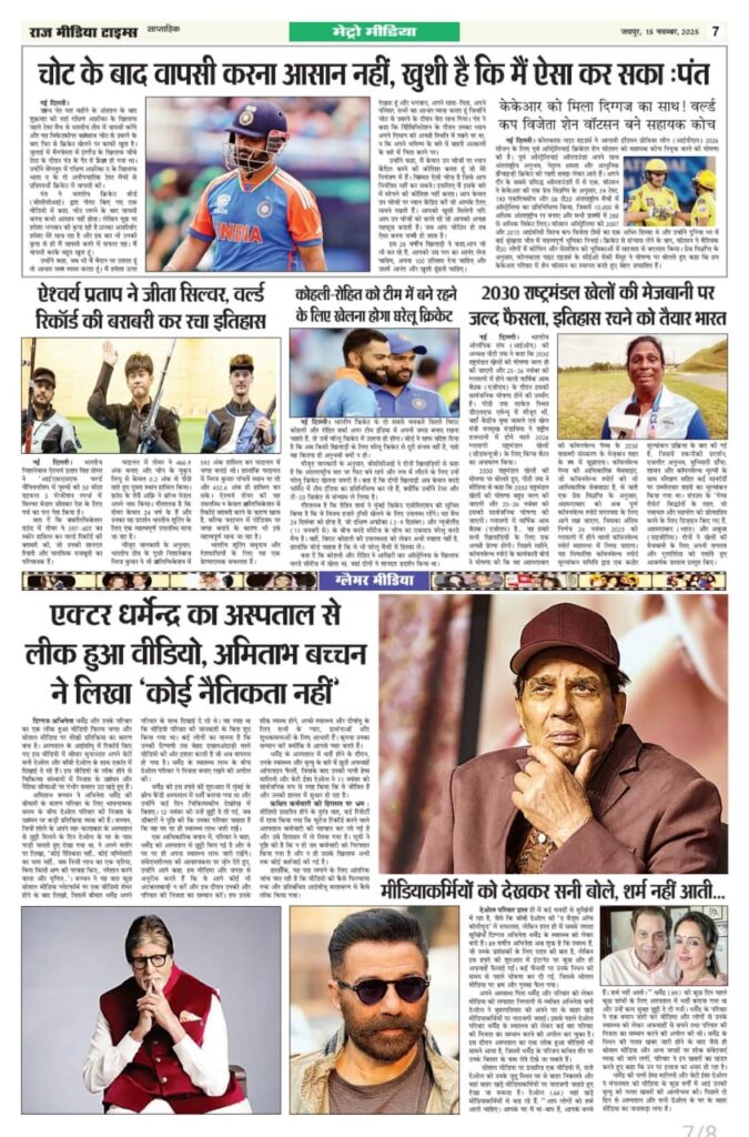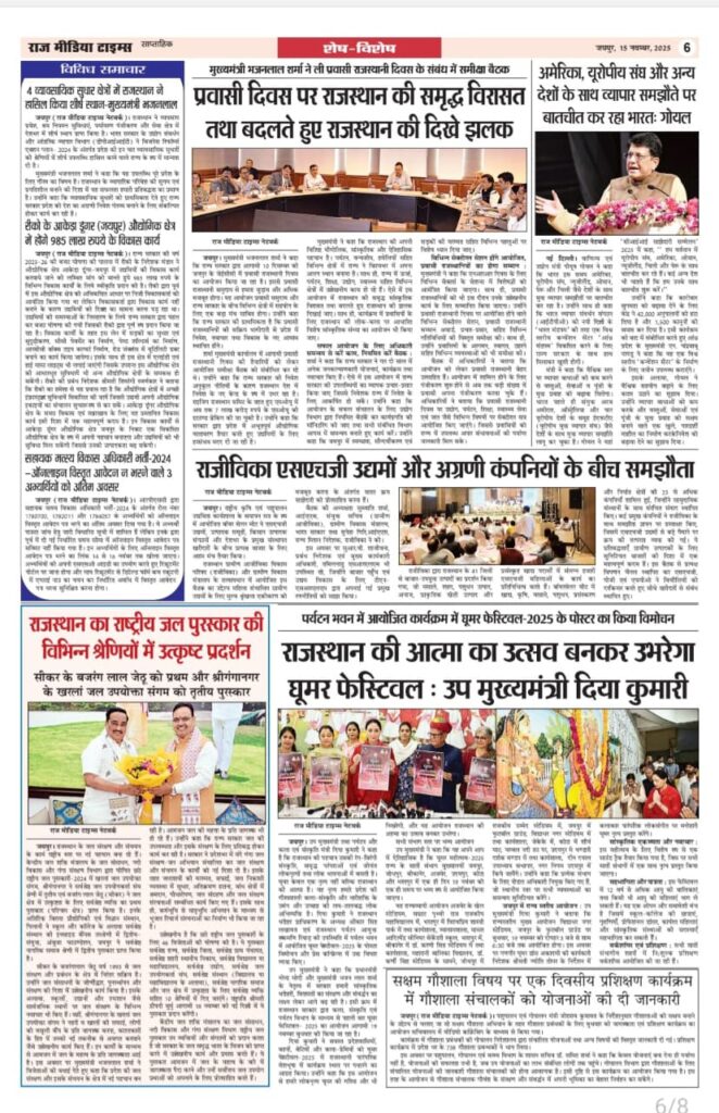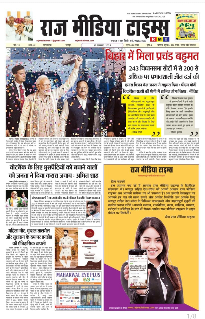 E-Paper E-Paper_(15-11-2025 ) Last updated: November 15, 2025 6:55 am RMT network Share 0 Min Read SHARE TAGGED:E-Paper Sign Up For Daily NewsletterBe keep up! Get the latest breaking news delivered straight to your inbox.[mc4wp_form]By signing up, you agree to our Terms of Use and acknowledge the data practices in our Privacy Policy. You may unsubscribe at any time. Share This Article Facebook Twitter Copy Link Print Share Previous Article जोन-14 में 24 अवैध विलाओं को किया सील: दो अवैध कॉलोनियों को किया ध्वस्त Next Article ऊंट पालन एवं डेयरी क्षेत्र के सतत विकास के लिए प्रतिबद्ध केंद्र सरकार- केंद्रीय मंत्री Stay Connected235.3kFollowersLike69.1kFollowersFollow11.6kFollowersPin56.4kFollowersFollow136kSubscribersSubscribe4.4kFollowersFollow - Advertisement - Latest News फ़ाइनल में पहुंचा भारत, बेथेल का शतक गया बेकार Sports March 6, 2026 भारत के पावरफुल नारी ग्रुप और काली सुपारी द्वारा आयोजित “Influencer & Business Super Excellence Award”, 101 प्रतिभाओं को किया गया सम्मानित Jaipur March 6, 2026 79 अभ्यर्थियों के चयन के बाद 5 के स्थान पर रिव्यू सूची जारी, दस्तावेज सत्यापन हेतु 9 मार्च को बुलाया Jaipur March 6, 2026 विद्यालयों में बुनियादी सुविधाएं हों सुनिश्चित, सरकारी योजनाओं का हो प्रभावी क्रियान्वयन Jaipur March 6, 2026 AdvertiseAdvertise with us Newsletters Deal