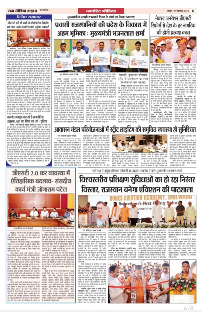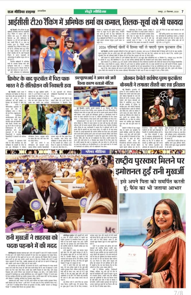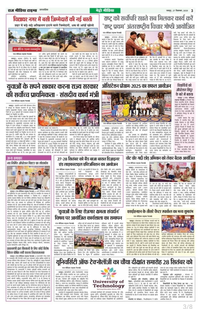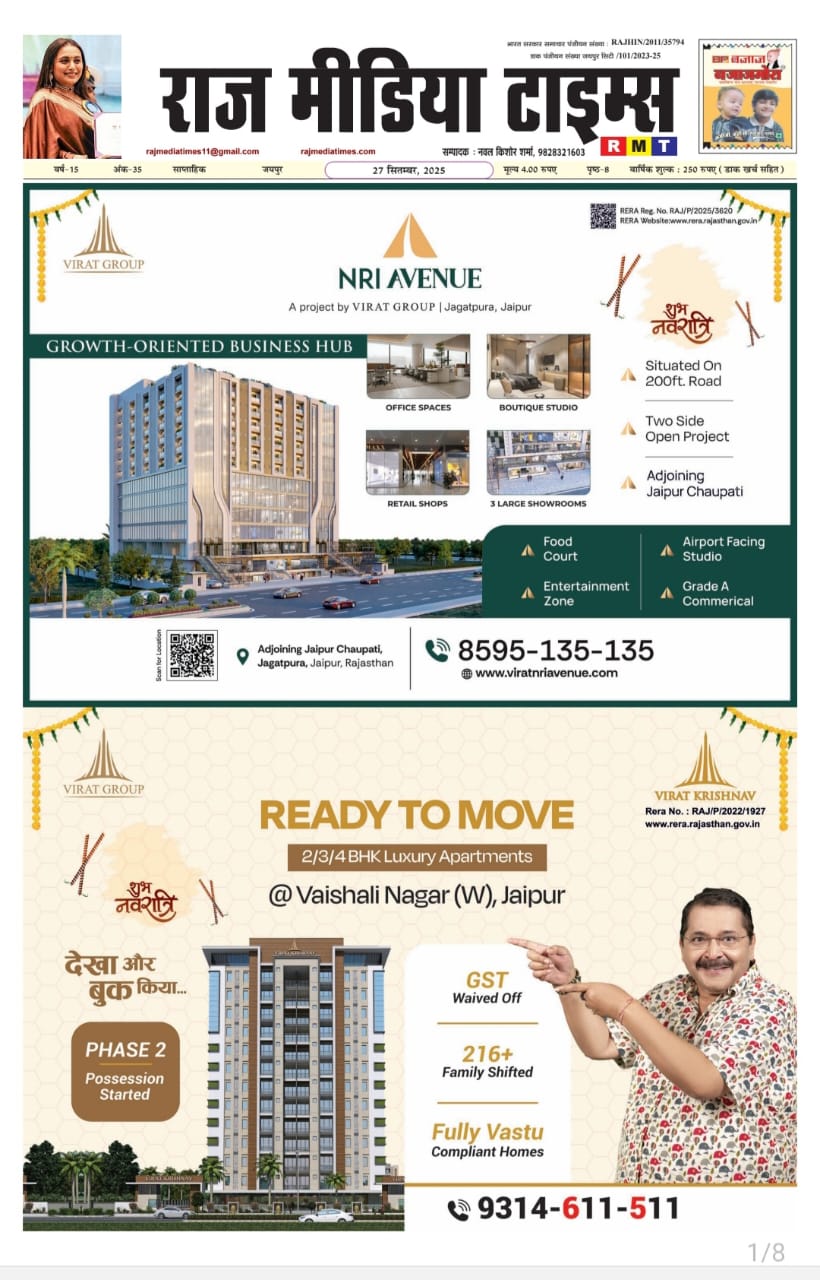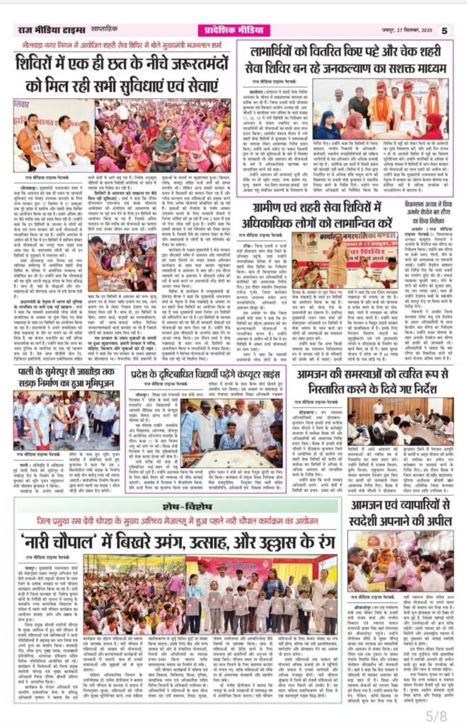 E-Paper E-paper_(27-09-2025 ) Last updated: September 27, 2025 6:10 am RMT network Share 0 Min Read SHARE TAGGED:E-Paper Sign Up For Daily NewsletterBe keep up! Get the latest breaking news delivered straight to your inbox.[mc4wp_form]By signing up, you agree to our Terms of Use and acknowledge the data practices in our Privacy Policy. You may unsubscribe at any time. Share This Article Facebook Twitter Copy Link Print Share Previous Article ऐसी फिल्मों का निर्माण हो जो भारतीय संस्कृति का आधार बने- कमल मुकुट Next Article आर्ट और क्राफ्ट प्रदर्शनी शिल्पकार का हुआ आगाज Stay Connected235.3kFollowersLike69.1kFollowersFollow11.6kFollowersPin56.4kFollowersFollow136kSubscribersSubscribe4.4kFollowersFollow - Advertisement - Latest News फ़ाइनल में पहुंचा भारत, बेथेल का शतक गया बेकार Sports March 6, 2026 भारत के पावरफुल नारी ग्रुप और काली सुपारी द्वारा आयोजित “Influencer & Business Super Excellence Award”, 101 प्रतिभाओं को किया गया सम्मानित Jaipur March 6, 2026 79 अभ्यर्थियों के चयन के बाद 5 के स्थान पर रिव्यू सूची जारी, दस्तावेज सत्यापन हेतु 9 मार्च को बुलाया Jaipur March 6, 2026 विद्यालयों में बुनियादी सुविधाएं हों सुनिश्चित, सरकारी योजनाओं का हो प्रभावी क्रियान्वयन Jaipur March 6, 2026 AdvertiseAdvertise with us Newsletters Deal