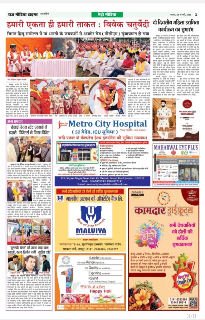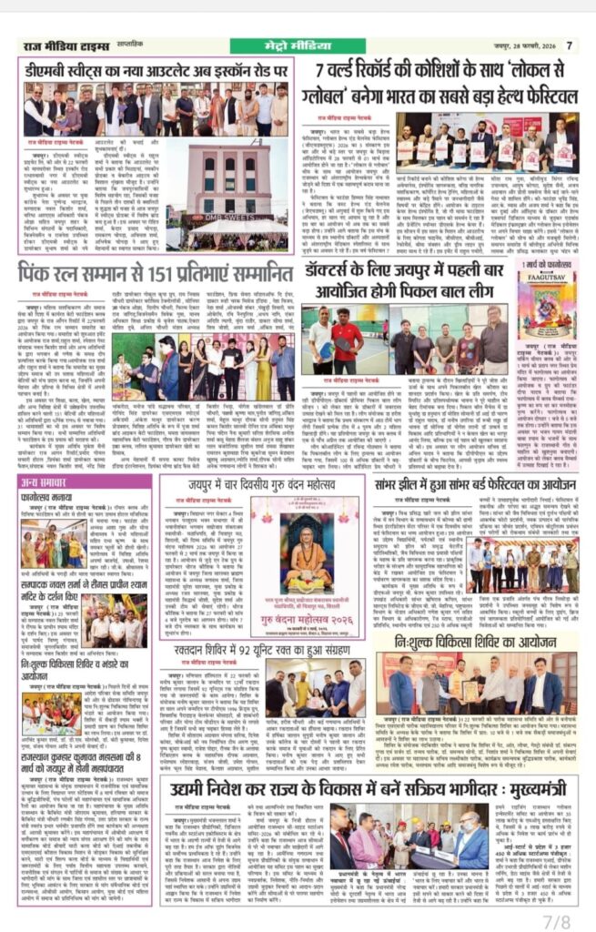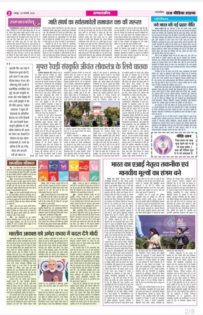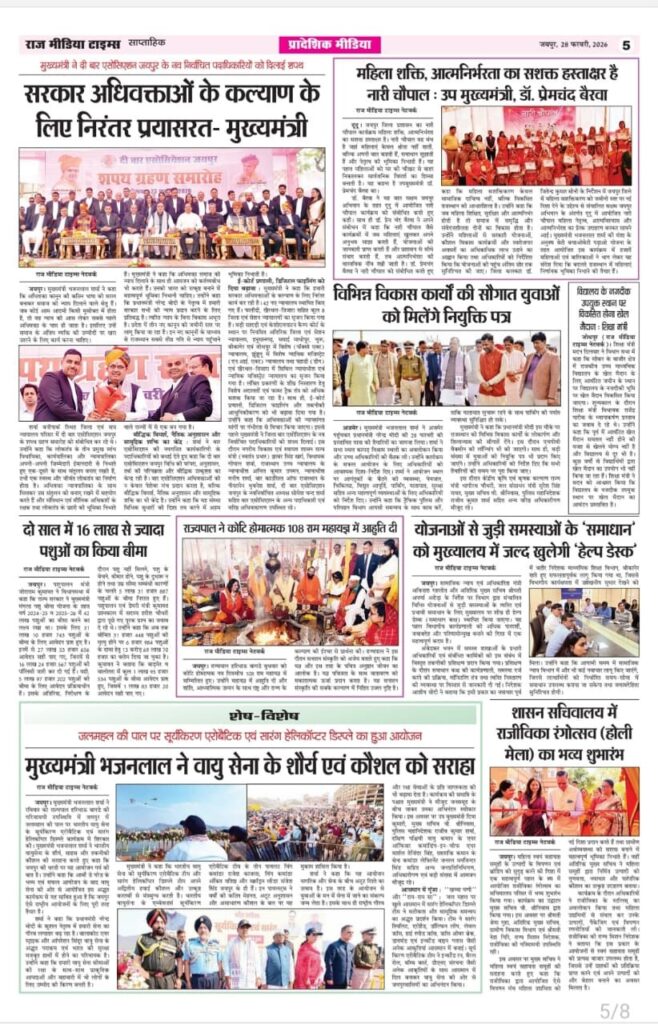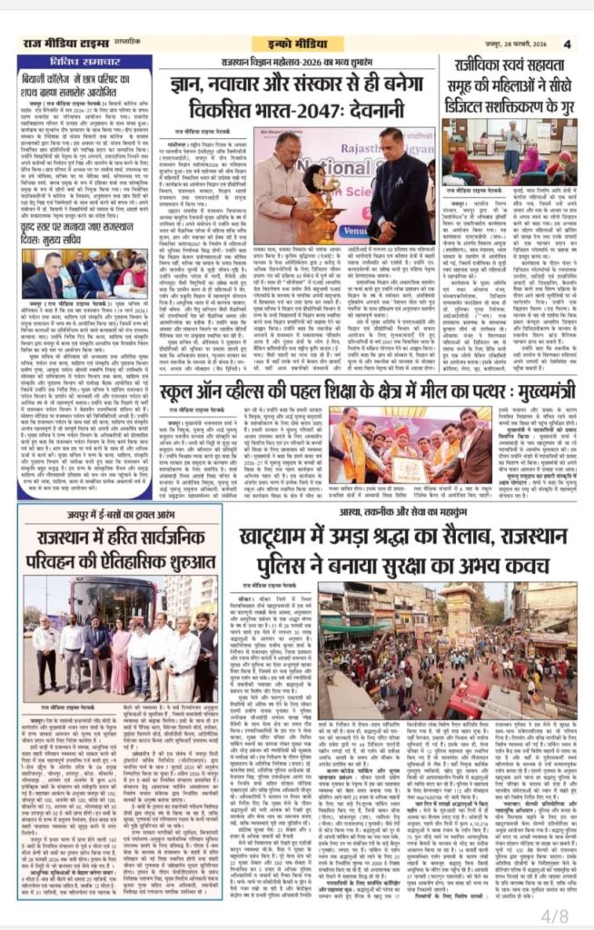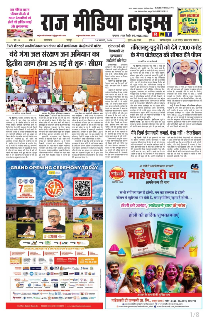 E-Paper E-Paper_(28-02-2026) Last updated: February 28, 2026 10:48 am RMT network Share 0 Min Read SHARE TAGGED:E-Paper Sign Up For Daily NewsletterBe keep up! Get the latest breaking news delivered straight to your inbox.[mc4wp_form]By signing up, you agree to our Terms of Use and acknowledge the data practices in our Privacy Policy. You may unsubscribe at any time. Share This Article Facebook Twitter Copy Link Print Share Previous Article होली पर्व पर यात्रियों की सुविधा हेतु साबरमती-हरिद्वार-साबरमती साप्ताहिक स्पेशल रेलसेवा का संचालन Next Article राज्यपाल और मुख्यमंत्री ने प्रधानमंत्री का किया अभिनंदन, पुष्पगुच्छ भेंट कर की अगवानी Stay Connected235.3kFollowersLike69.1kFollowersFollow11.6kFollowersPin56.4kFollowersFollow136kSubscribersSubscribe4.4kFollowersFollow - Advertisement - Latest News फ़ाइनल में पहुंचा भारत, बेथेल का शतक गया बेकार Sports March 6, 2026 भारत के पावरफुल नारी ग्रुप और काली सुपारी द्वारा आयोजित “Influencer & Business Super Excellence Award”, 101 प्रतिभाओं को किया गया सम्मानित Jaipur March 6, 2026 79 अभ्यर्थियों के चयन के बाद 5 के स्थान पर रिव्यू सूची जारी, दस्तावेज सत्यापन हेतु 9 मार्च को बुलाया Jaipur March 6, 2026 विद्यालयों में बुनियादी सुविधाएं हों सुनिश्चित, सरकारी योजनाओं का हो प्रभावी क्रियान्वयन Jaipur March 6, 2026 AdvertiseAdvertise with us Newsletters Deal
