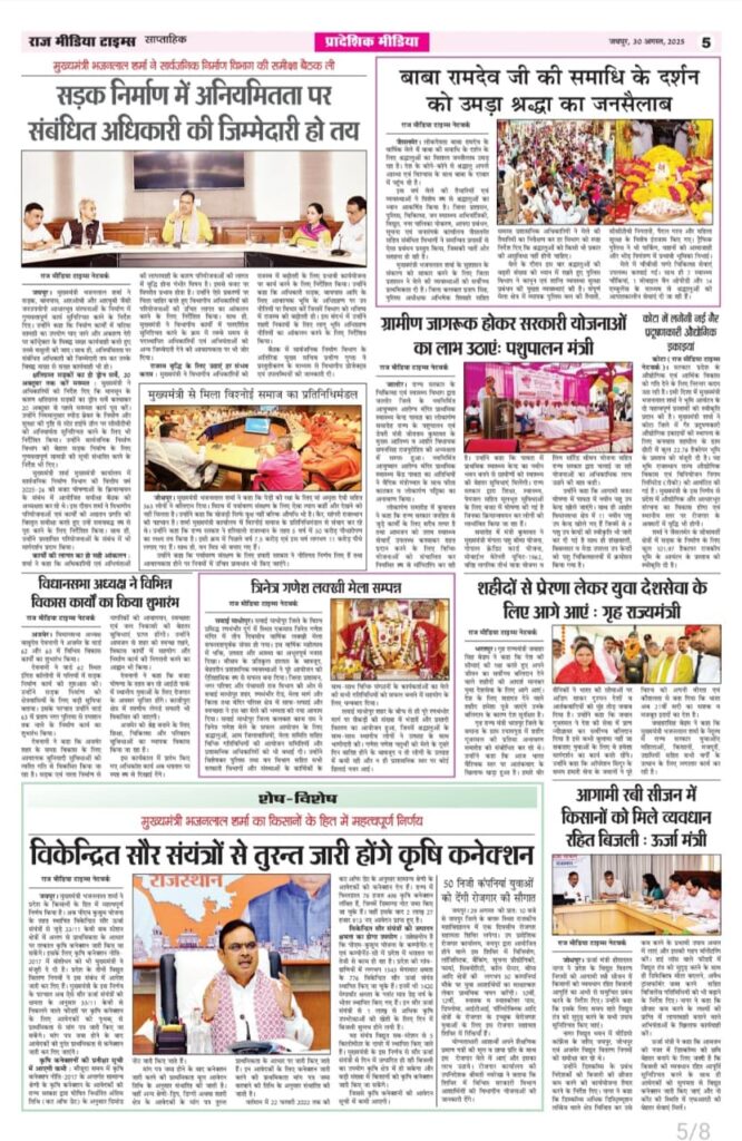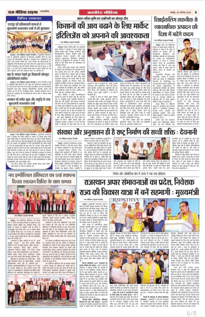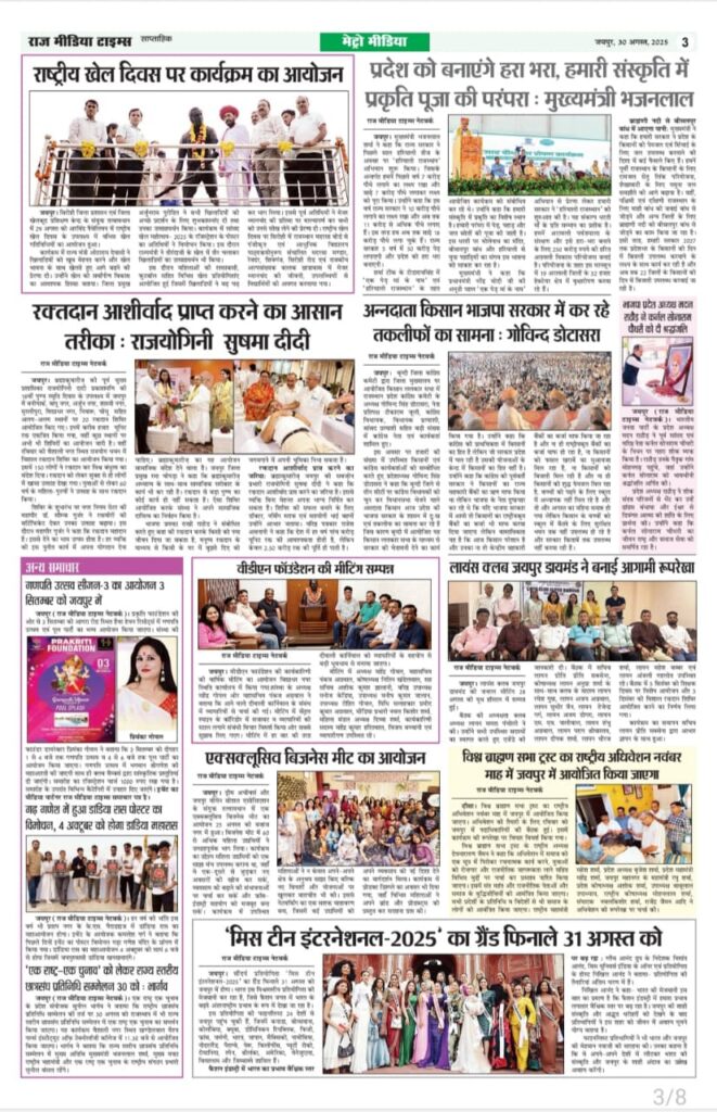 E-Paper E-Paper_30-08-2025 Last updated: August 30, 2025 6:35 am RMT network Share 0 Min Read SHARE TAGGED:E-Paper Sign Up For Daily NewsletterBe keep up! Get the latest breaking news delivered straight to your inbox.[mc4wp_form]By signing up, you agree to our Terms of Use and acknowledge the data practices in our Privacy Policy. You may unsubscribe at any time. Share This Article Facebook Twitter Copy Link Print Share Previous Article рдЬрдпрдкреБрд░ рдореЗрдВ рд▓рд┐рдЯрд┐рд▓ рд╕рди рд╕рд╛рдЗрди рдХрд┐рдбреНрд╕ рдлреИрд╢рди рд╢реЛ рдХрд╛ рдЖрдпреЛрдЬрди 31 рдЕрдЧрд╕реНрдд рдХреЛ Next Article рдж рдЗрдХреЛрдиреЙрдорд┐рдХ рдЯрд╛рдЗрдореНрд╕ рдиреЗ рдЬрдпрдкреБрд░ рдореЗрдВ рдмрд┐рдЬрдиреЗрд╕ рд╕рдорд┐рдЯ рдХрд╛ рдХрд┐рдпрд╛ рдЖрдпреЛрдЬрди Stay Connected235.3kFollowersLike69.1kFollowersFollow11.6kFollowersPin56.4kFollowersFollow136kSubscribersSubscribe4.4kFollowersFollow - Advertisement - Latest News рдлрд╝рд╛рдЗрдирд▓ рдореЗрдВ рдкрд╣реБрдВрдЪрд╛ рднрд╛рд░рдд, рдмреЗрдереЗрд▓ рдХрд╛ рд╢рддрдХ рдЧрдпрд╛ рдмреЗрдХрд╛рд░ Sports March 6, 2026 рднрд╛рд░рдд рдХреЗ рдкрд╛рд╡рд░рдлреБрд▓ рдирд╛рд░реА рдЧреНрд░реБрдк рдФрд░ рдХрд╛рд▓реА рд╕реБрдкрд╛рд░реА рджреНрд╡рд╛рд░рд╛ рдЖрдпреЛрдЬрд┐рдд тАЬInfluencer & Business Super Excellence AwardтАЭ, 101 рдкреНрд░рддрд┐рднрд╛рдУрдВ рдХреЛ рдХрд┐рдпрд╛ рдЧрдпрд╛ рд╕рдореНрдорд╛рдирд┐рдд Jaipur March 6, 2026 79 рдЕрднреНрдпрд░реНрдерд┐рдпреЛрдВ рдХреЗ рдЪрдпрди рдХреЗ рдмрд╛рдж 5 рдХреЗ рд╕реНрдерд╛рди рдкрд░ рд░рд┐рд╡реНрдпреВ рд╕реВрдЪреА рдЬрд╛рд░реА, рджрд╕реНрддрд╛рд╡реЗрдЬ рд╕рддреНрдпрд╛рдкрди рд╣реЗрддреБ 9 рдорд╛рд░реНрдЪ рдХреЛ рдмреБрд▓рд╛рдпрд╛ Jaipur March 6, 2026 рд╡рд┐рджреНрдпрд╛рд▓рдпреЛрдВ рдореЗрдВ рдмреБрдирд┐рдпрд╛рджреА рд╕реБрд╡рд┐рдзрд╛рдПрдВ рд╣реЛрдВ рд╕реБрдирд┐рд╢реНрдЪрд┐рдд, рд╕рд░рдХрд╛рд░реА рдпреЛрдЬрдирд╛рдУрдВ рдХрд╛ рд╣реЛ рдкреНрд░рднрд╛рд╡реА рдХреНрд░рд┐рдпрд╛рдиреНрд╡рдпрди Jaipur March 6, 2026 AdvertiseAdvertise with us Newsletters Deal