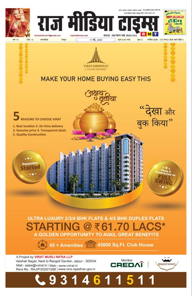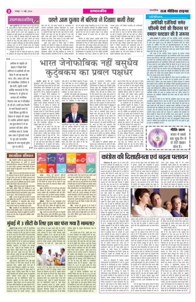 E-Paper Epaper 10 may 2024 Last updated: May 11, 2024 9:06 am RMT network Share 0 Min Read SHARE Sign Up For Daily NewsletterBe keep up! Get the latest breaking news delivered straight to your inbox.[mc4wp_form]By signing up, you agree to our Terms of Use and acknowledge the data practices in our Privacy Policy. You may unsubscribe at any time. Share This Article Facebook Twitter Copy Link Print Share Previous Article हाईकोर्ट का आदेश, शराब दुकानों का जून तक जबरन लाइसेंस बढ़ाने का आदेश रद्द Next Article मदर्स डे पर महिलाओं के स्वास्थ्य का महत्व:सूर्या हॉस्पिटल और क्वीन्स ऑफ जयपुर क्लब का साझा प्रयास Stay Connected235.3kFollowersLike69.1kFollowersFollow11.6kFollowersPin56.4kFollowersFollow136kSubscribersSubscribe4.4kFollowersFollow - Advertisement - Latest News राज्य सरकार की जनहितकारी पहल: जेडीए अब रिक्त भूखंडों और स्थानों को देगा अल्पावधि किराये पर Jaipur March 7, 2026 E-Paper_(07-03-2026) E-Paper March 7, 2026 उद्योगपति सुदेश शर्मा को जन्मदिवस पर दी बधाई Jaipur March 7, 2026 फ़ाइनल में पहुंचा भारत, बेथेल का शतक गया बेकार Sports March 6, 2026 AdvertiseAdvertise with us Newsletters Deal
