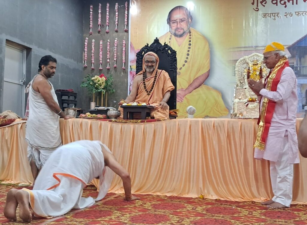 जयपुर। विद्याधर नगर सेक्टर 4 स्थित भगवान परशुराम भवन सभागार में श्री भवानीशंकर भगवान सद्योजात शंकराश्रम स्वामीजी- मठाधिपति, श्री चित्रापुर मठ, शिराली के दिव्य सान्निध्य में गुरु वंदना महोत्सव 2026 का आयोजन 27 फरवरी से 2 मार्च तक जयपुर में किया गया।