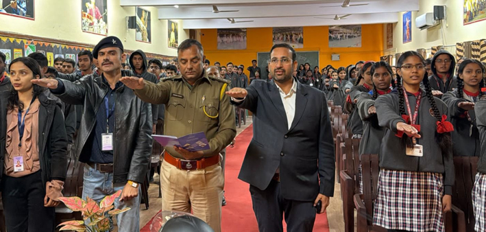 प्रिंसिपल प्रदीप कुमार टेलर ने अतिथियों का हरित पौधे भेंट कर स्वागत किया। दिनेश सिंह ने विद्यार्थियों को संबोधित करते हुए यातायात नियमों के उल्लंघन से संबंधित चिंताजनक आंकड़ों तथा उनसे होने वाली दुर्घटनाओं और जनहानि के बारे में जानकारी दी।