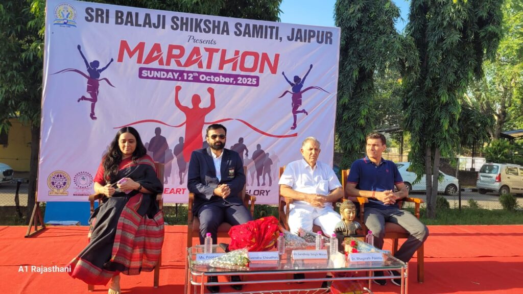 जयपुर। श्री बालाजी शिक्षा समिति, जयपुर द्वारा आयोजित वार्षिकोत्सव “मंथन 2K25” का चौथा दिन ऊर्जा, उत्साह और नवाचार से परिपूर्ण रहा। सुबह की शुरुआत जोश से भरे मैराथन 2K25 से हुई, जिसका शुभारंभ अर्जुन पुरस्कार से सम्मानित भारतीय पैरा एथलीट संदीप सिंह मान ने हरी झंडी दिखाकर किया। दौड़ में सैकड़ों प्रतिभागियों ने भाग लिया और अपनी फिटनेस तथा खेल भावना का शानदार प्रदर्शन किया। पुरुष वर्ग में आयुष, युवराज और आदित्य ने क्रमशः प्रथम, द्वितीय और तृतीय स्थान प्राप्त किए, जबकि महिला वर्ग में नेहा कुमारी, शिवानी शर्मा और दिव्या कंवर विजेता रहीं।