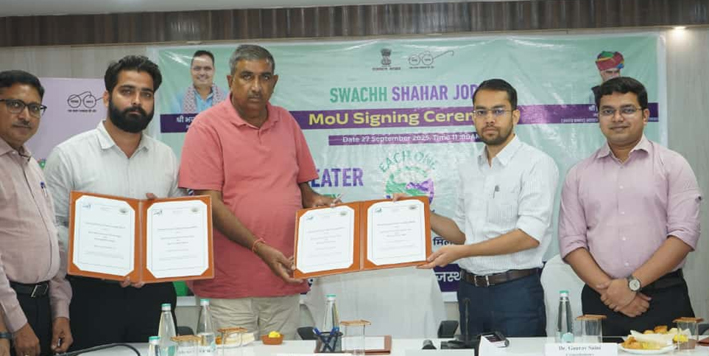 इस अवसर पर नगर निगम ग्रेटर एवं नगर पालिका बगरू के मध्य” स्वच्छ शहर जोड़ी” के अंतर्गत समझौता ज्ञापन एमओयू हस्ताक्षर कार्यक्रम नगर निगम ग्रेटर मुख्यालय के पंडित दीनदयाल उपाध्याय सभागार में आयोजित किया गया।