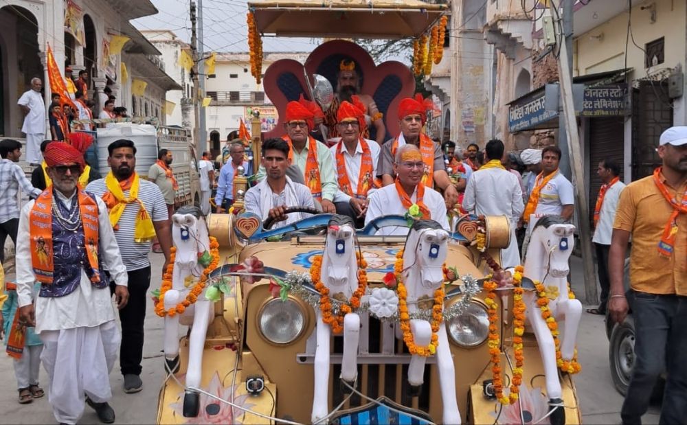 Raj Media Times > Blog > Jaipur > खंडेला में परशुराम जन्मोत्सव: शोभायात्रा का पुष्पवर्षा से भव्य स्वागत