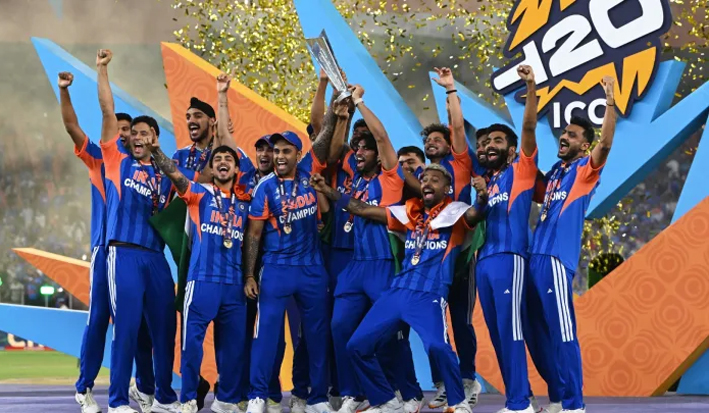 नई दिल्ली। संजू सैमसन, अभिषेक शर्मा और इशान किशन के आक्रामक अर्धशतकों और भारतीय गेंदबाज़ों के सामूहिक प्रदर्शन की बदौलत भारत ने न्यूज़ीलैंड को हराते हुए लगातार दूसरा T20 विश्व कप जीत लिया है। भारत लगातार दो T20 विश्व कप जीतने के साथ ही घर पर यह टूर्नामेंट जीतने वाली पहली टीम बनी है। भारत का यह तीसरा T20 विश्व कप ख़िताब है।