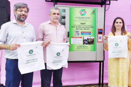 वार्ड नं. 150 जनता स्टोर मार्केट में स्थापित की गई झोला बैंक मशीन, क्यूआर कोड स्कैन कर 5 रूपये में प्राप्त कर सकते है झोला