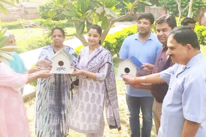 नगर निगम ग्रेटर आयुक्त रूकमणि रियाड़ ने शिवाजी पार्क में लगाये पक्षियों के लिये परिण्डे