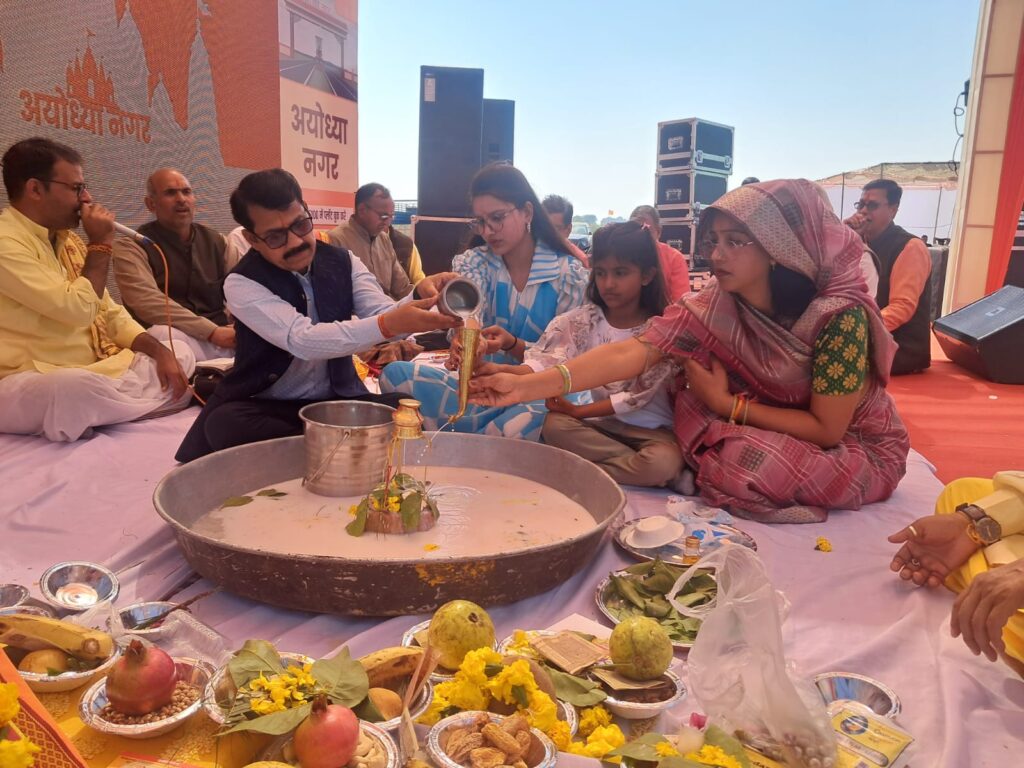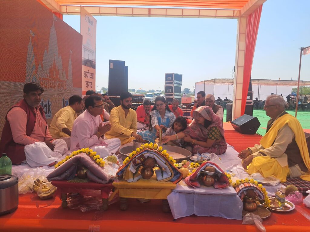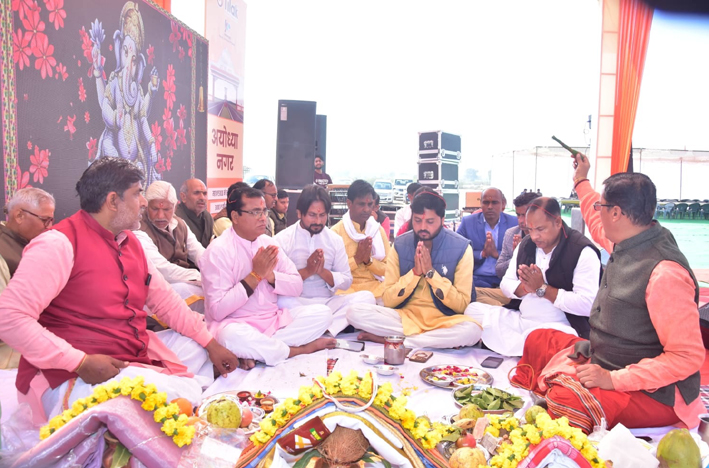 इस अवसर पर तिलक ग्रुप के एमडी राम टेलर,राजेंद्र सिंह चौहान, एसवीके ग्रुप के एमडी दीपक शर्मा,जुगल मौर्य,हेमंत कुमार व श्रृंग ऋषि आश्रम के महंत प्रेम दास जी महाराज और अन्य संत महंतो के सानिध्य में ग्यारह विद्वान पंडितों के द्वारा मंत्रोच्चार के साथ भूमि पूजन किया।