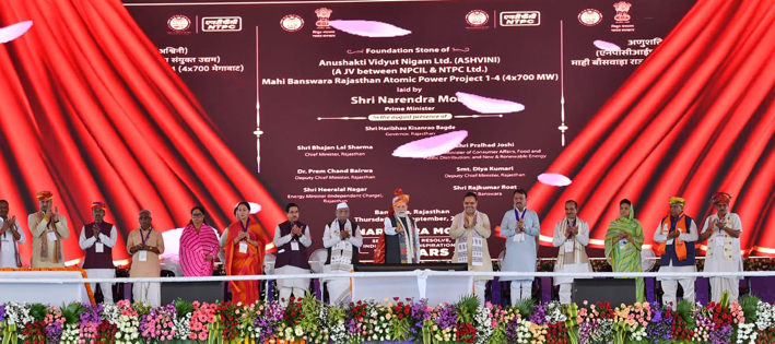 प्रधानमंत्री नरेन्द्र मोदी, राज्यपाल हरिभाऊ किसनराव बागड़े एवं मुख्यमंत्री भजनलाल शर्मा की उपस्थिति में गुरुवार को नापला (बांसवाड़ा) में माही बांसवाड़ा परमाणु ऊर्जा परियोजना के शिलान्यास समारोह को संबोधित कर रहे थे। उन्होंने देशभर में 1 लाख 22 हजार करोड़ रुपये से अधिक की विभिन्न परियोजनाओं का शिलान्यास एवं उद्घाटन किया। मोदी ने राजस्थान को 42 हजार करोड़ रुपए की परमाणु ऊर्जा परियोजना सहित 1 लाख 8 हजार 468 करोड़ रुपए से अधिक की परियोजनाओं एवं विकास कार्यों तथा दो वंदे भारत एक्सप्रेस सहित तीन नई ट्रेनों की सौगात दी।