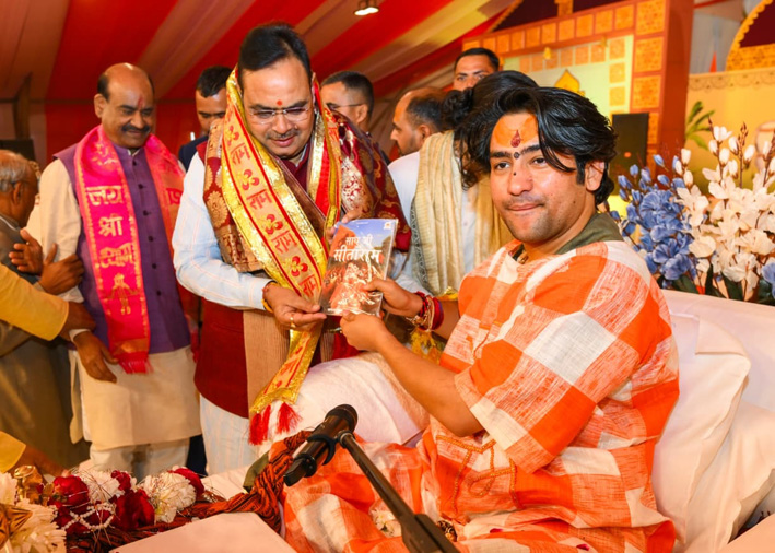 इस दौरान पंडित धीरेन्द्र शास्त्री ने दुपट्टा ओढ़ाकर मुख्यमंत्री का स्वागत किया। कार्यक्रम में लोकसभा अध्यक्ष ओम बिरला, स्कूल शिक्षा मंत्री मदन दिलावर, ऊर्जा राज्यमंत्री (स्वतंत्र प्रभार) हीरालाल नागर, विधायक श्रीमती कल्पना देवी सहित संत-महंत एवं बड़ी संख्या में श्रद्धालु उपस्थित रहे।